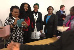 Celebrating 2017 Women International day with Maura Healy ( Massachusetts State A.G.) in Worcester YWCA. MA. from the L Uduak Uko AHWEE National Treasurer, Maura Healy Mass state AG and Etop Okokon AWHEE Founder/ President .